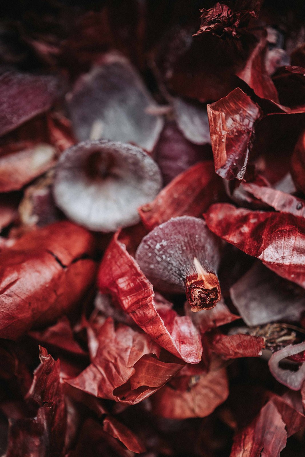 Rote Zwiebelschalen für unseren Olivenhain-Ton stammen vom Kölner Burger-Restaurant "Die fette Kuh". Diese Schalen geben erstaunlich grüne Farbtöne!