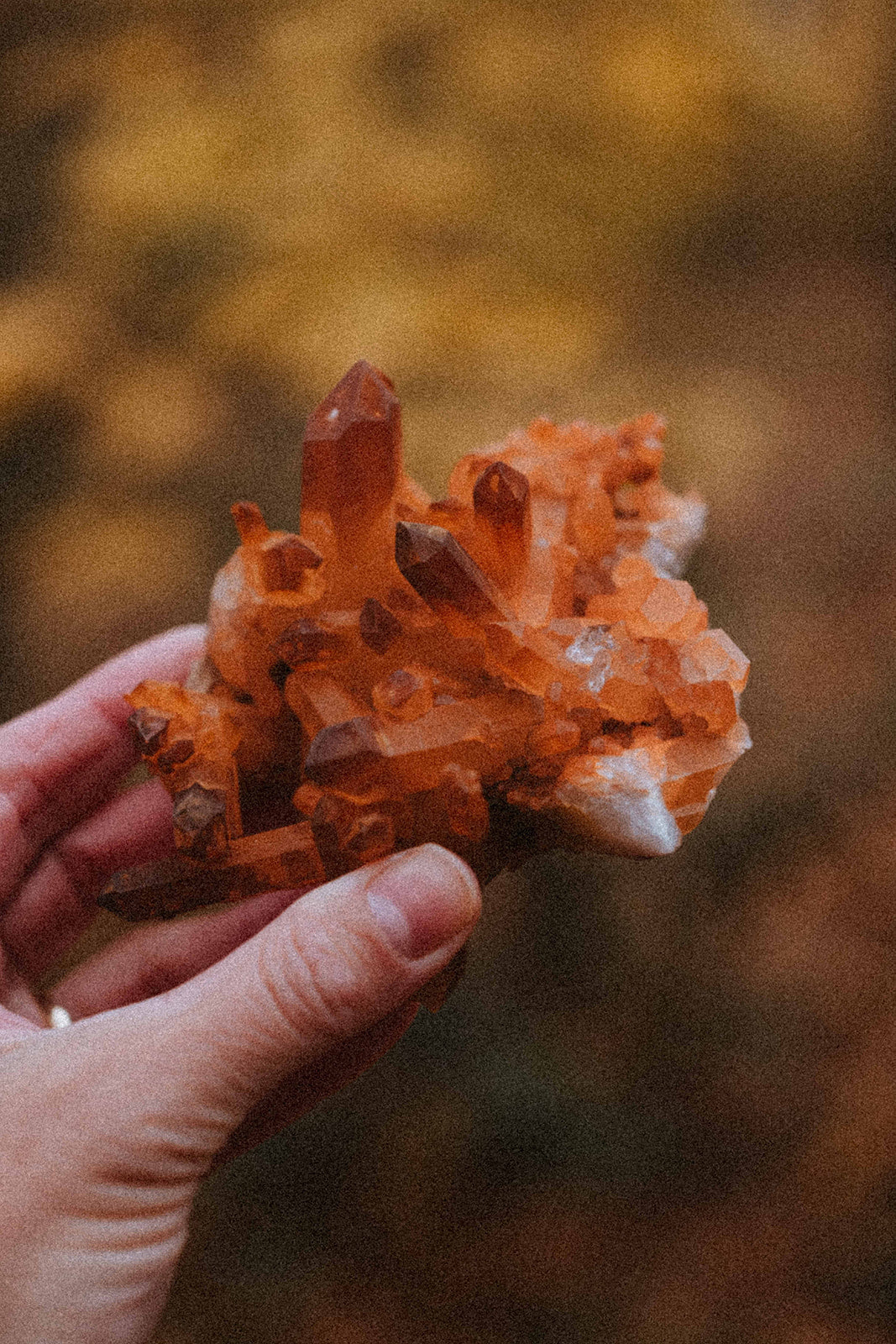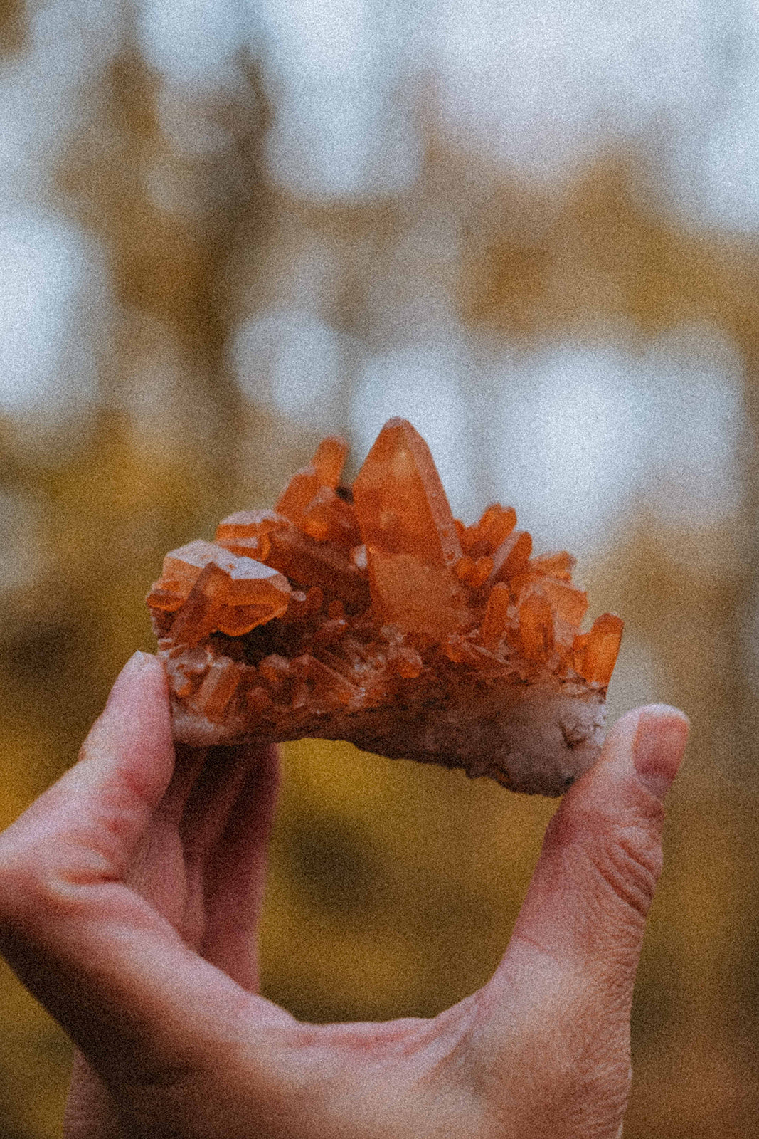 Jeder Kristall ist ein Naturwunder mit eigenem Charakter. Dieser Mandarinquarz besticht durch seine wilden EinschlĂĽsse und das warme, natĂĽrliche Leuchten.