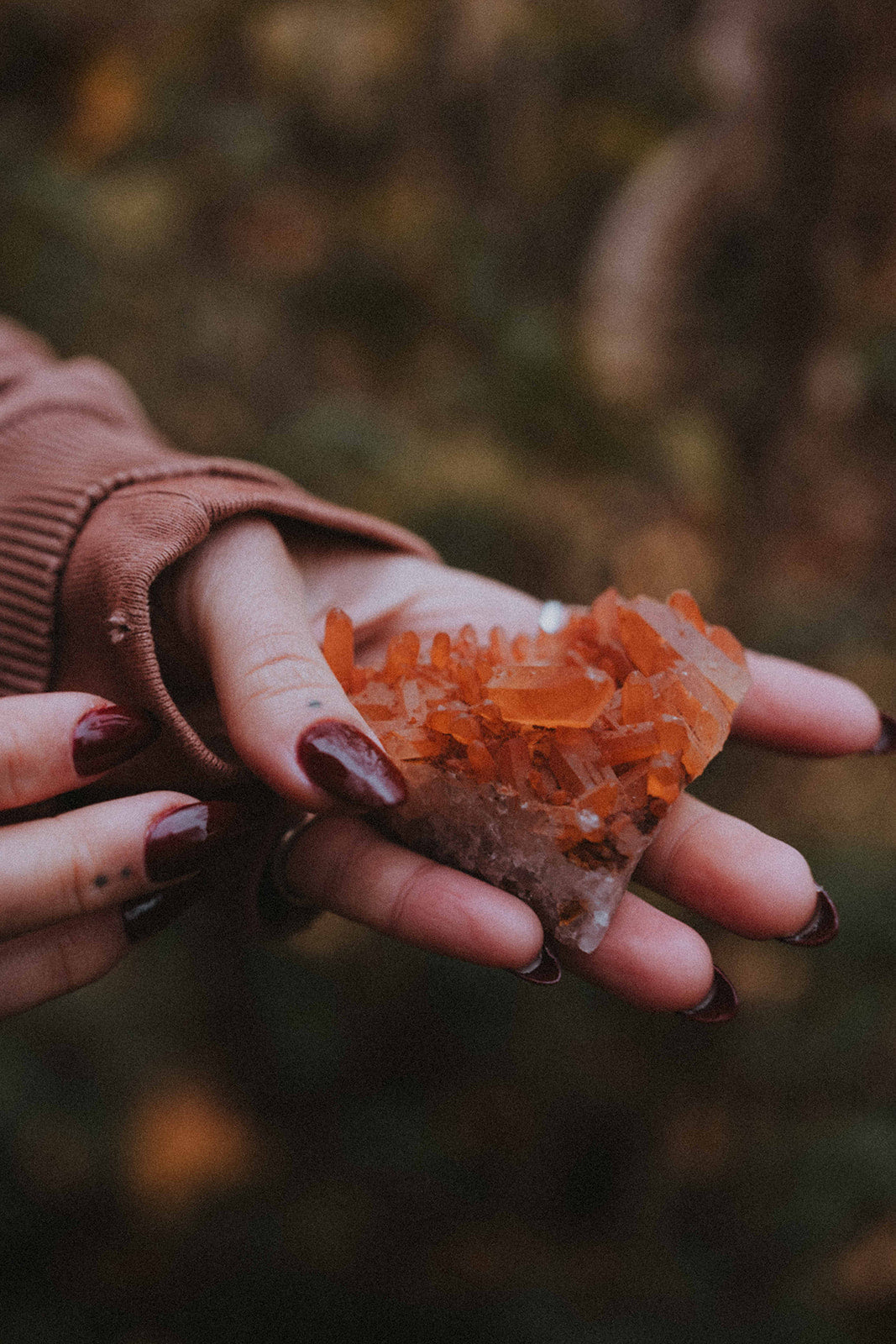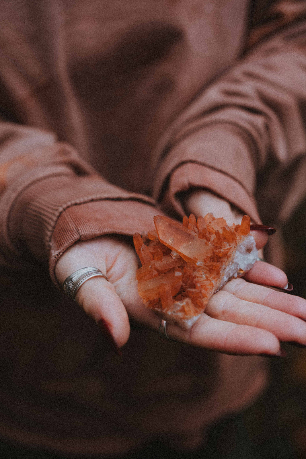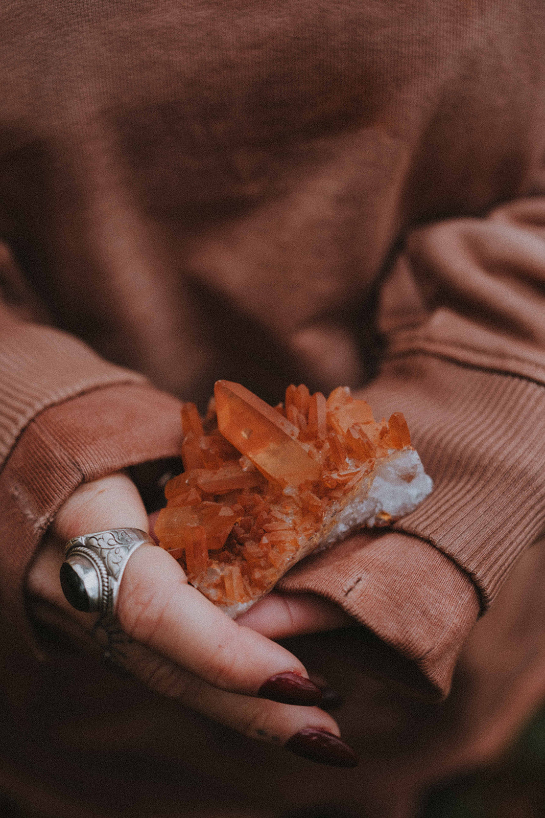 Jeder Kristall ist ein Naturwunder mit eigenem Charakter. Dieser Mandarinquarz besticht durch seine wilden EinschlĂĽsse und das warme, natĂĽrliche Leuchten.