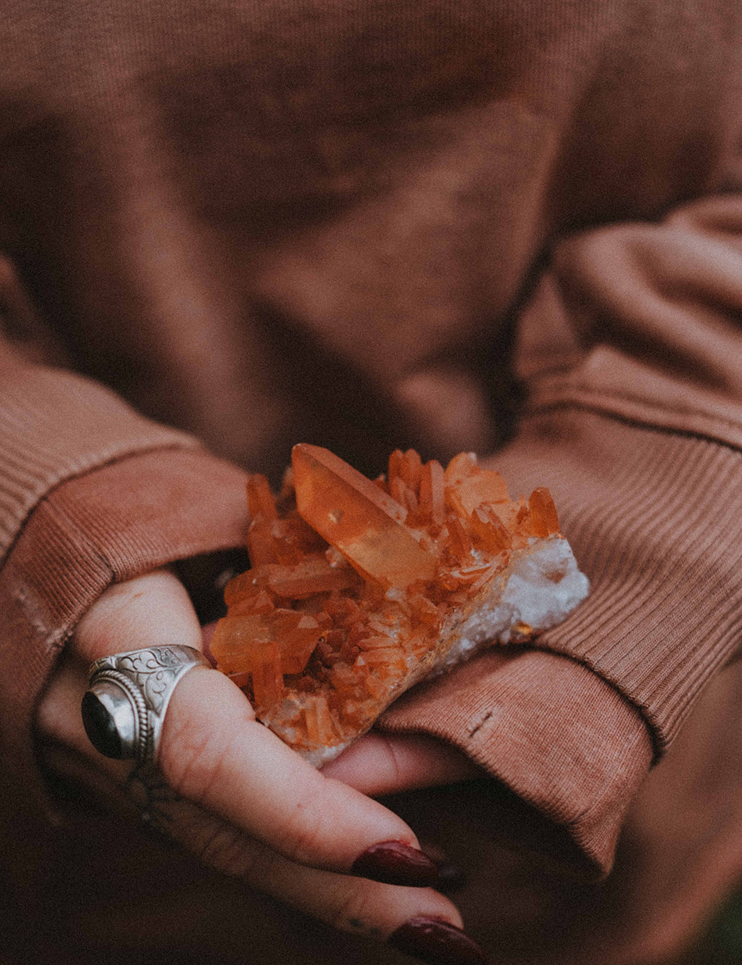 Die Kristalle ergänzen das Sortiment als ruhige, holistische Elemente – eine Sammlung, die perspektivisch weiter wächst.