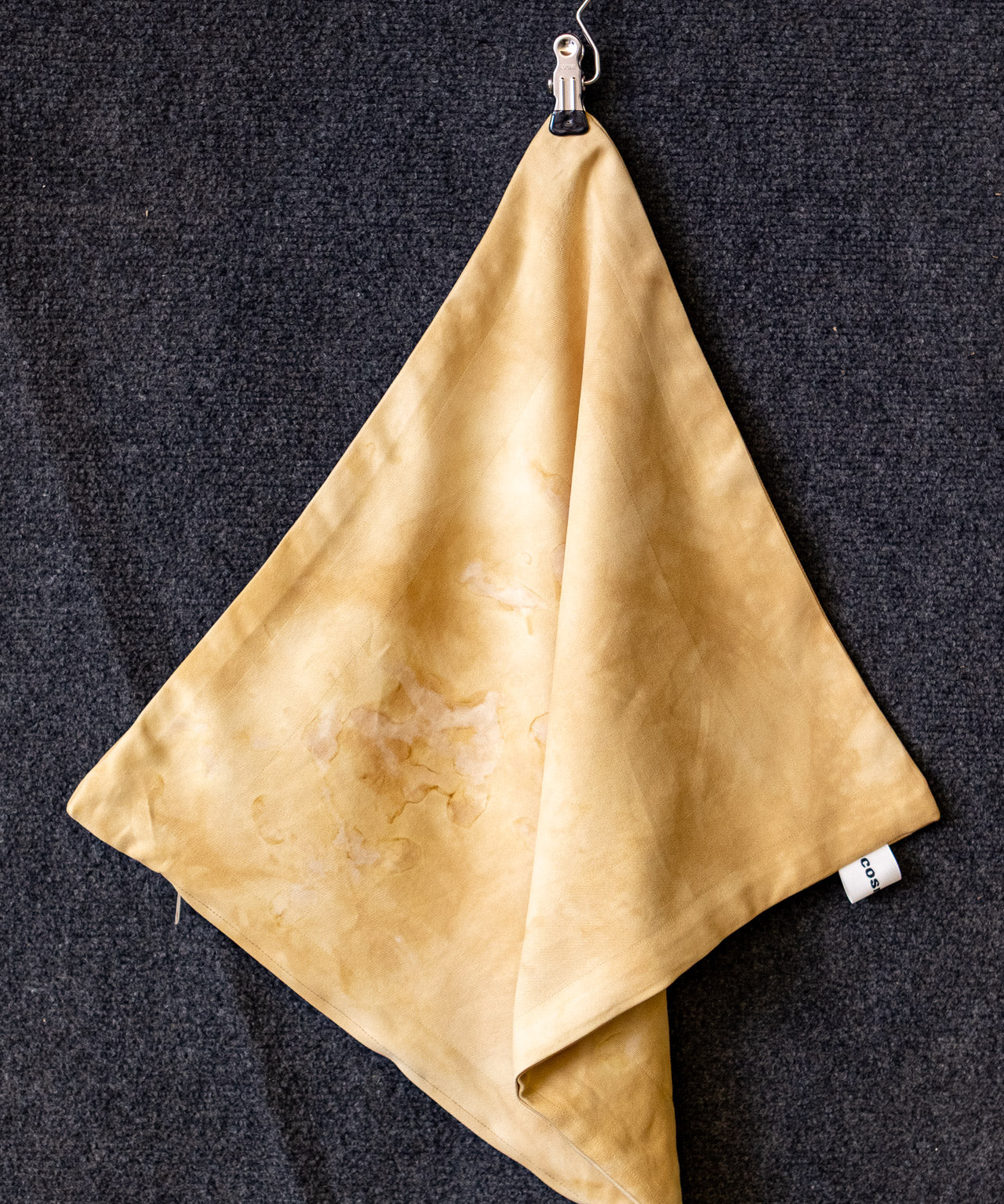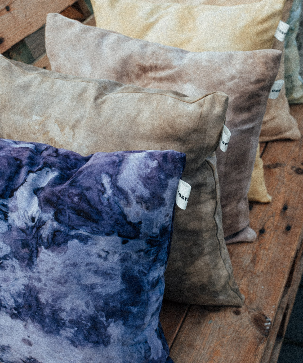 Limitierte Kollektion handgefertigter Kissenhüllen aus geretteten Hotelservietten. Jedes Stück wird in Köln mit Pflanzenfarben und / oder lokalem Food Waste gefärbt - ein nachhaltiges Unikat für dein Zuhause.