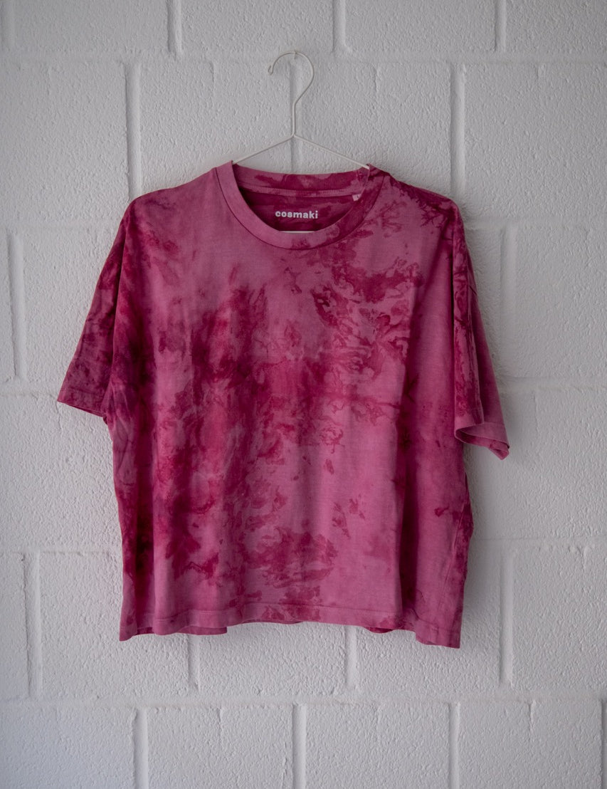 Natürlich gefärbte T-Shirts aus dem Cosmaki Naturfärbeatelier. Jede Farbe entsteht durch definierte Parameter wie pH-Wert, Konzentration und Prozessdauer. Gefertigt aus hochwertiger Baumwolle, vorgewaschen und für reproduzierbare Naturfärbung optimiert. Klare Schnitte, robuste Materialien und farbstabile Ergebnisse für den täglichen Einsatz.